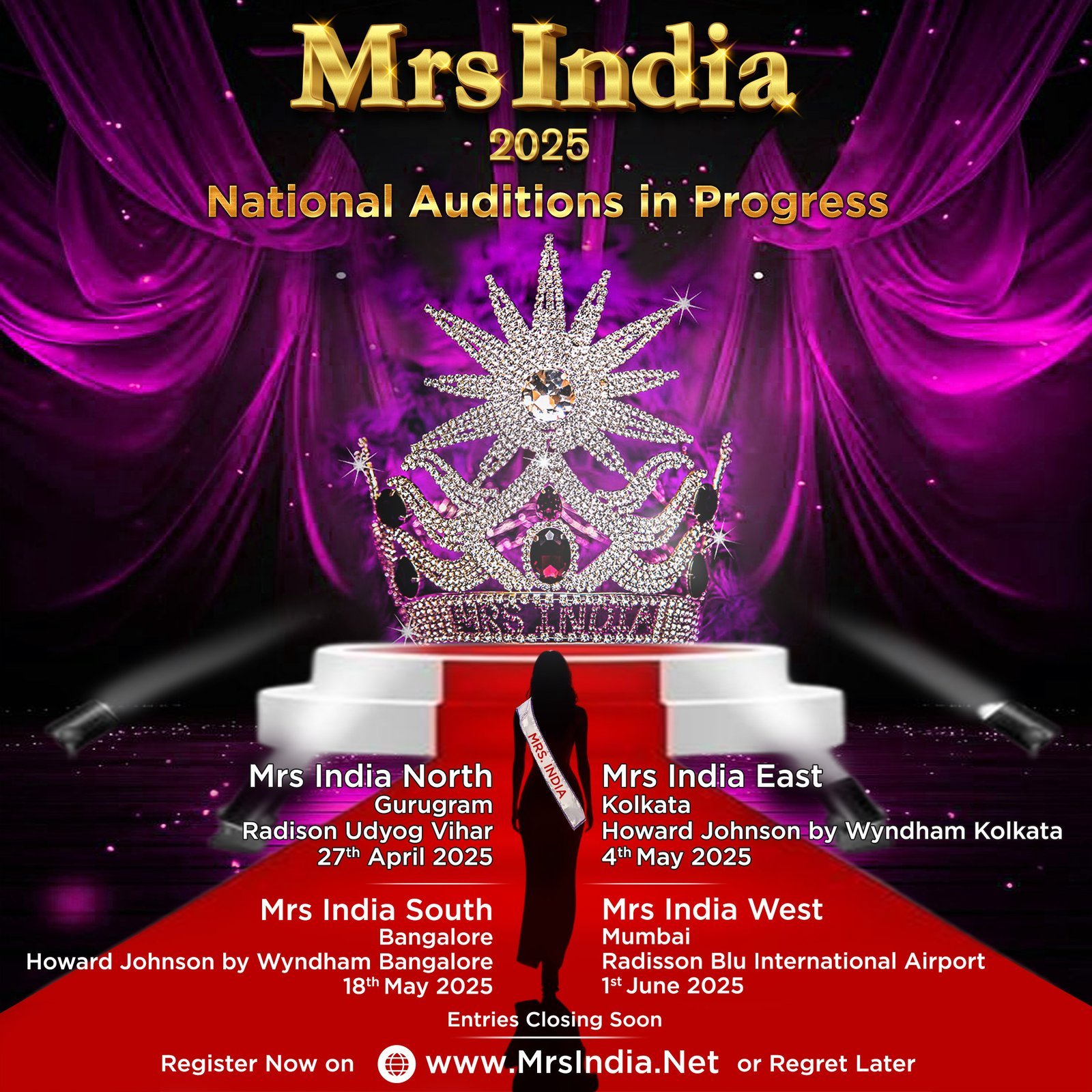 Step into the spotlight and register now at www.MrsIndia.Net – or regret missing your moment!