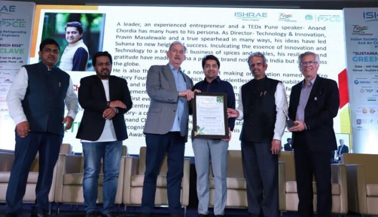 New Delhi (India), February 14: ISHRAE (Indian Society of Heating, Refrigerating, and Air Conditioning Engineers), Pune Chapter honored Anand Chordia, Director, Technology & Innovation, Pravin Masalewale, & Founder, The Ecofactory Foundation with ELEMENT OF EARTH Award under the Five Element Awards 2023 at their flagship exceptional event of GREEN CONCLAVE 23.